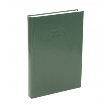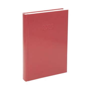 Kalendarz książkowy A5 dzienny w wersji ekonomicznej. Soboty i niedziele na oddzielnych stronach 384 strony format 140x205 mm tłoczenie roku srebrną folią zakładka w kolorze oprawy kwadratowe rogi oprawa twarda