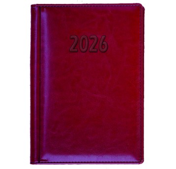 Kalendarz książkowy A5 dzienny w wersji LUX. Soboty i niedziele na oddzielnych stronach, 416 stron, format 140x205 mm, papier Chamois (kremowy),miękka okładka na gąbce,tłoczenie roku na gorąco, zakładka w kolorze oprawy,zaokrąglone rogi,uchwyt na długopis