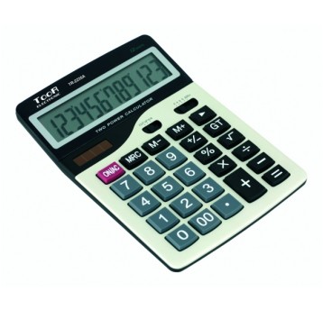 Kalkulator z 12-cyfrowym wyświetlaczem, podwójny system zasilania (bateria słoneczna i baterie, stały kąt nachylenia wyświetlacza, wymiar: 152x152x27mm, podwójna pamięć, wyposażony w klawisz zmiany znaku. Gwarancja 2 lata.