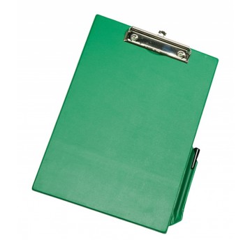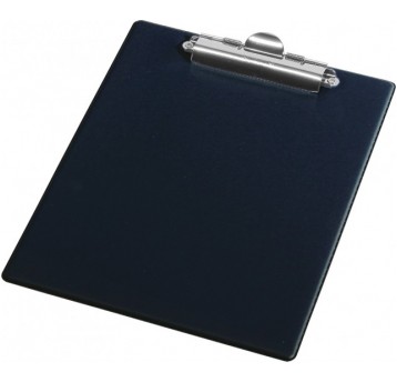 Podkładka do pisania bez okładki, wykonana z tektury o gr.2mm, pokryta wysokiej jakości PVC, zacisk sprężynowy, zacisk spinający do 50 kartek, na dłuższym boku kieszonka na długopis lub ołówek. Specjalne oczko umożliwiające zawieszenie. Wymiary 230x350mm.