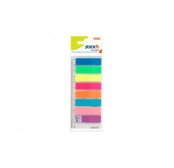 8 bloczków po 25 zakładek o wymiarach 45 × 12 mm. Opakowanie zawiera dodatkowo 12 cm linijkę. Zakładki umożliwiają łatwe zaznaczanie i szybkie odnajdywanie ważnych informacji. Można je wielokrotnie odrywać i przyklejać w innych miejscach. J.s. szt.