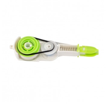 Przezroczysta obudowa pozwala na kontrolę zużycia taśmy. Długość taśmy 6 m, szerokość 4.2 mm. Ruchomy mechanizm zabezpieczający chroni taśmę przed zabrudzeniem i uszkodzeniami. Produkt ekologiczny, wykonany z materiałów przetworzonych w 88,4% nie wliczając części wymiennych.