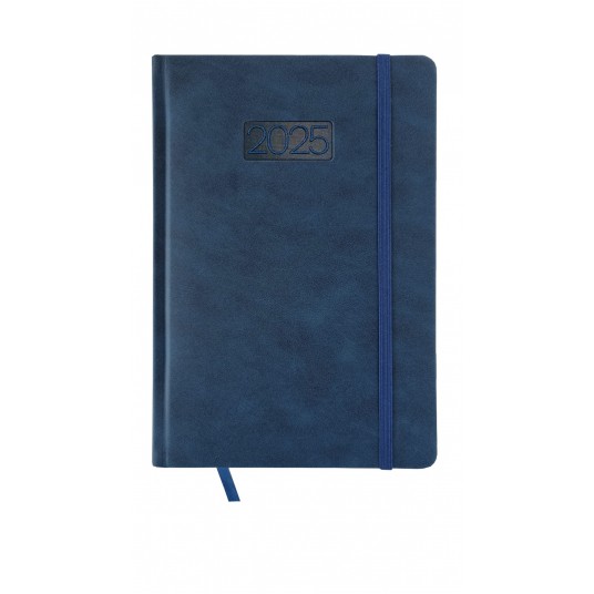 Kalendarz książkowy A5 dzienny w wersji LUX. Soboty i niedziele na oddzielnych stronach, 416 stron, format 140x205 mm, papier Chamois (kremowy), miękka okładka na gąbce , tłoczenie roku na gorąco, zakładka w kolorze oprawy, zaokrąglone rogi, uchwyt na długopis (długopis nie jest dołączony!), elastyczne zapięcie (gumka), oprawa twarda. Kalendarz w folii zabezpieczającej.