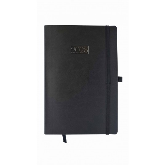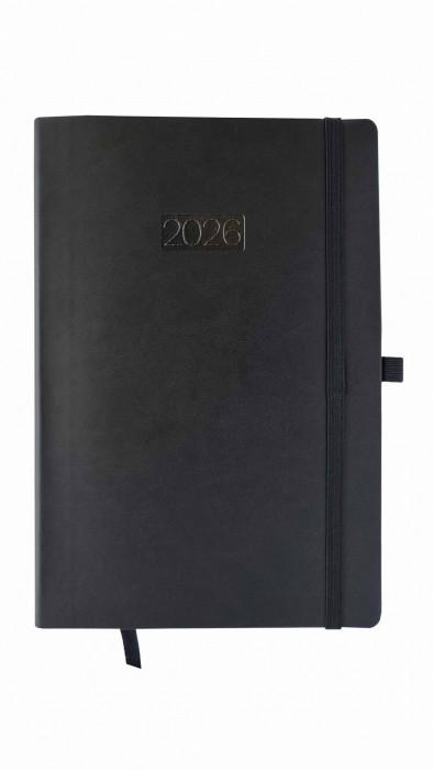 Kalendarz książkowy A5 dzienny w wersji LUX. Soboty i niedziele na oddzielnych stronach, 416 stron, format 140x205 mm, papier Chamois (kremowy), miękka okładka na gąbce , tłoczenie roku na gorąco, zakładka w kolorze oprawy, zaokrąglone rogi, uchwyt na długopis (długopis nie jest dołączony!), elastyczne zapięcie (gumka), oprawa twarda. Kalendarz w folii zabezpieczającej.