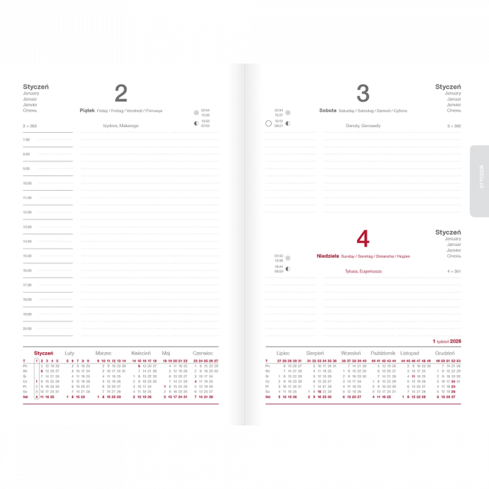 Kalendarz Szefa Herlitz 2026 to eleganckie i funkcjonalne narzędzie do codziennej organizacji czasu, stworzone z myślą o osobach, które cenią porządek, przejrzystość i profesjonalny wygląd. Dzienny układ stron zapewnia pełną stronę na każdy dzień roboczy, co pozwala swobodnie planować zadania, spotkania i notatki bez ograniczeń. Twarda oprawa pokryta wysokiej jakości okleiną vivella nadaje kalendarzowi ponadczasowy charakter i zapewnia trwałość przez cały rok intensywnego użytkowania. Dzięki brulionowemu, szytemu i klejonemu grzbietowi, kalendarz otwiera się płasko i pozostaje stabilny na biurku, co przekłada się na wygodę pisania. Markowane registry ułatwiają szybkie odnalezienie konkretnego miesiąca, a zaznaczenie świąt i ważnych dni pozwala lepiej planować czas zawodowy i prywatny. To doskonały wybór dla każdego, kto potrzebuje solidnego i stylowego narzędzia do zarządzania codziennością.