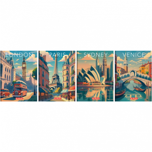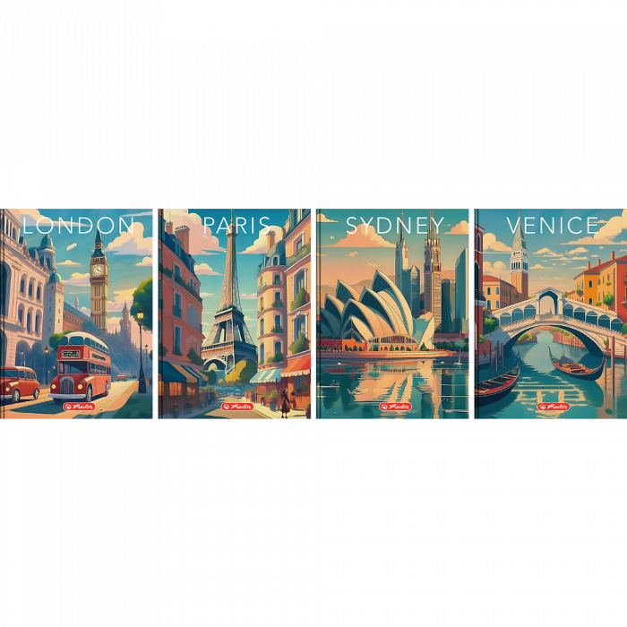 Kolekcja Herlitz Retro City to wyjątkowa seria papiernicza dla dorosłych, inspirowana klimatem najsłynniejszych miast świata w stylu vintage. Okładki przenoszą w czasy klasycznych podróży, przedstawiając ikoniczne widoki metropolii, takich jak Paryż, Londyn czy Sydney, w artystycznych, nostalgicznych grafikach. Subtelne barwy i elegancki design dodają charakteru, a starannie wykonane wnętrza gwarantują komfort pisania. To idealny wybór dla osób ceniących estetykę retro i ponadczasowy styl – doskonałe na spotkania, podróże i codzienne notatki. Herlitz Retro City – stylowy towarzysz każdej miejskiej przygody!